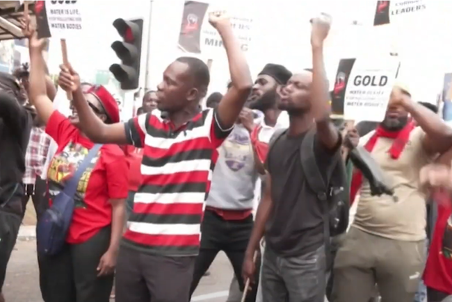 가나에서는 무차별적인 금광개발에 반대하는 시위가 이어지고 있다. 이에 가나 정부는 경찰을 동원해 이를 막았다. 출처 : 현지 방송 화면 갈무리