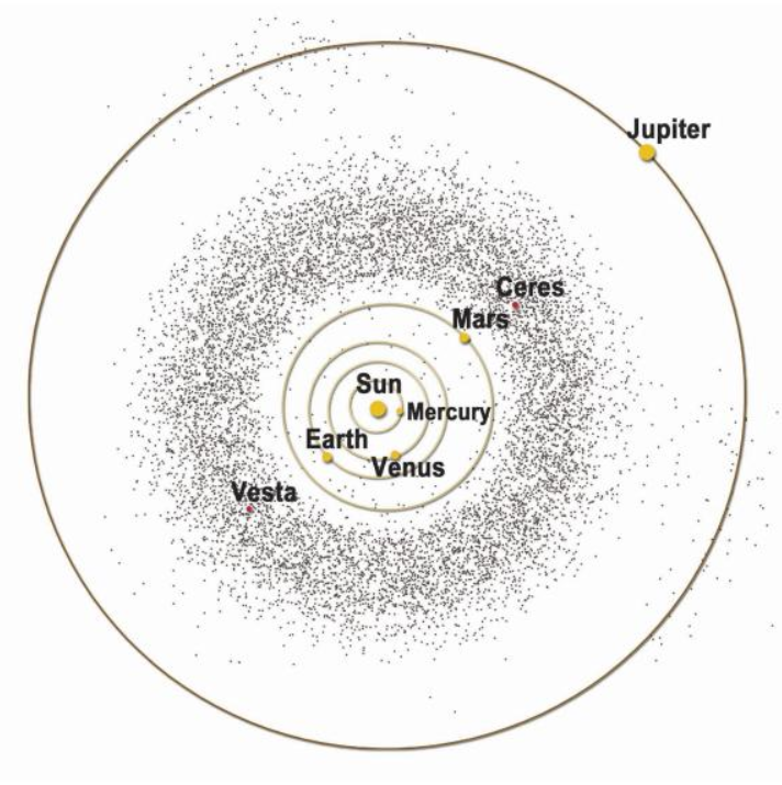 던 미션(Dawn Mission) 아트 시리즈의 소행성대 아티스트 그래픽. 출처: NASA/McREL