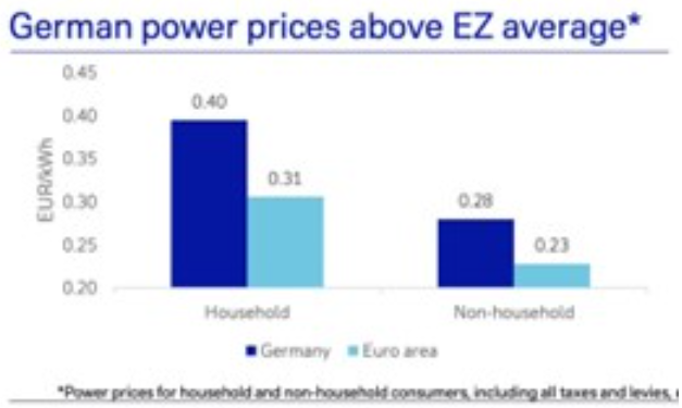 독일 산업·상공회의소(DIHK)는 이에 대해 "높은 에너지 가격이 기업의 투자 활동과 혁신 역량에도 영향을 미친다산업 기업의 3분의 이상이 에너지 비용 부담으로 인해 현재 핵심 운영 프로세스에 대한 투자를 줄일 수밖에 없다고 응답했다"고 밝혔다.