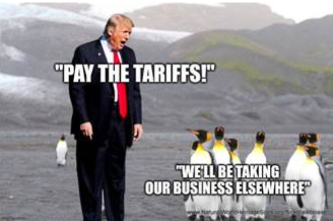 5. 미국과 상품 무역에서 적자를 보는 국가들조차도 모두 10%의 관세를 부과받는다. 이는 미국과 아무런 무역 관계가 없거나 인구가 없는 지역(디에고 가르시아, 남극 등)에도 적용된다. 예를 들어, 영국은 10%의 관세를 부과받는다. 미국과 영국의 상품 무역은 거의 균형을 이루고 있다(580억 달러 대 560억 달러). 그럼에도 불구하고, 영국은 미국이라는 최대 무역 파트너로의 수출에서 타격을 입는다. 트럼프의 공식에 따라 계산하면, 영국에는 관세가 부과되지 않아야 한다. 반대로 서비스 무역이 포함된다면, 영국 수입품에는 20%의 관세가 부과되어야 한다. 모건스탠리는 이 새로운 관세 체제가 영국 경제성장률을 최대 0.6%포인트 낮출 수 있다고 예측했다. (어차피 현재 성장률은 거의 0에 가깝다.)