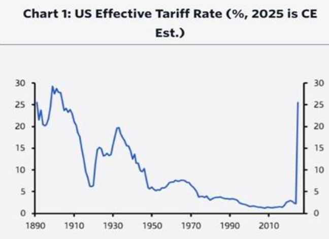 1. 트럼프가 인상한 관세는 미국 수입품 평균 관세율을 26%까지 끌어올렸고, 이는 지난 130년 중 가장 높은 수준이다.