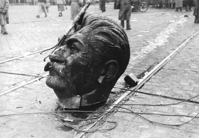 1956부다페스트에 있던 스탈린 동상은 시위대에 의해 철거되었다출처위키미디어
