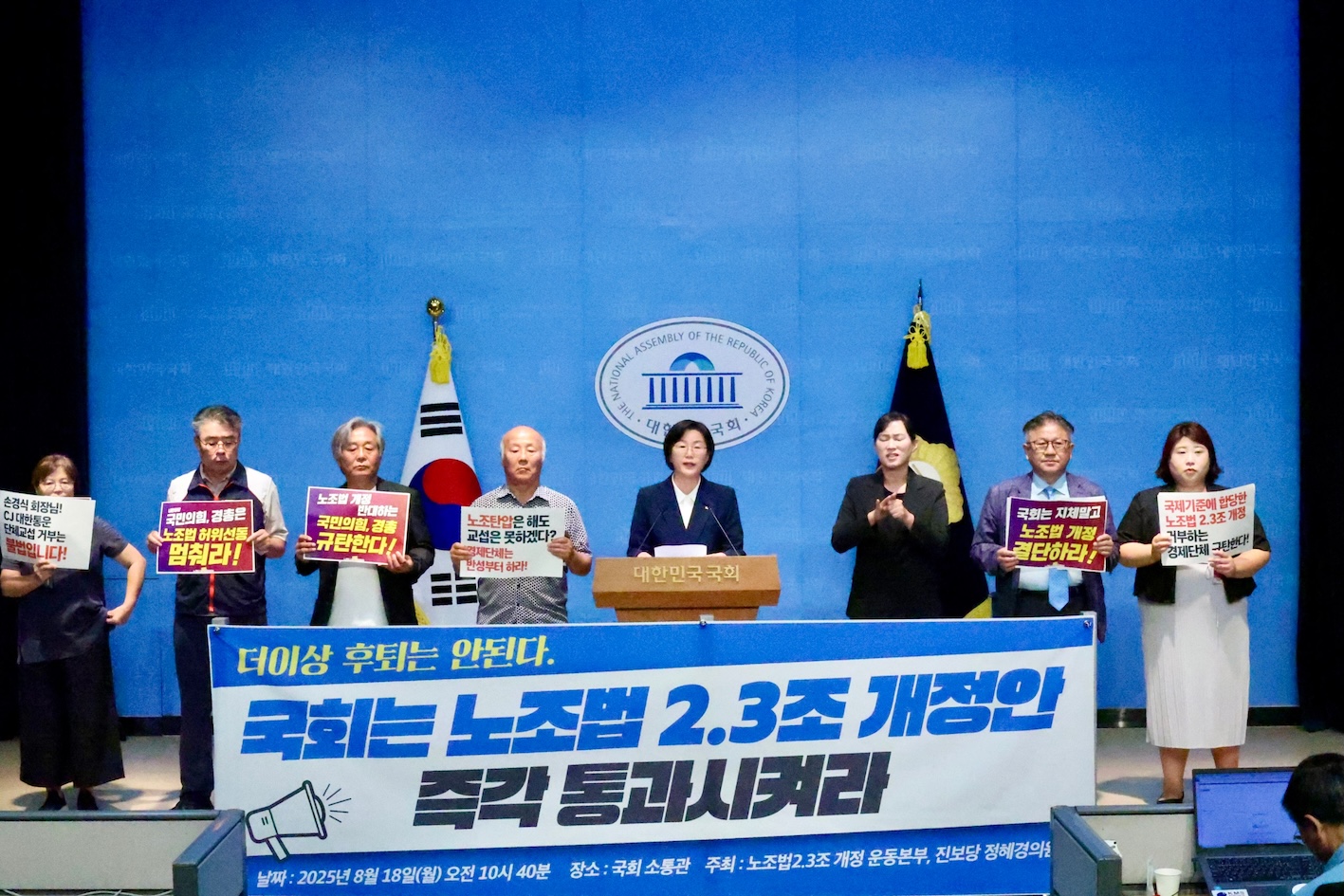 노조법 2·3조 개정안 즉각 통과 촉구 기자회견 현장. 진보당 제공