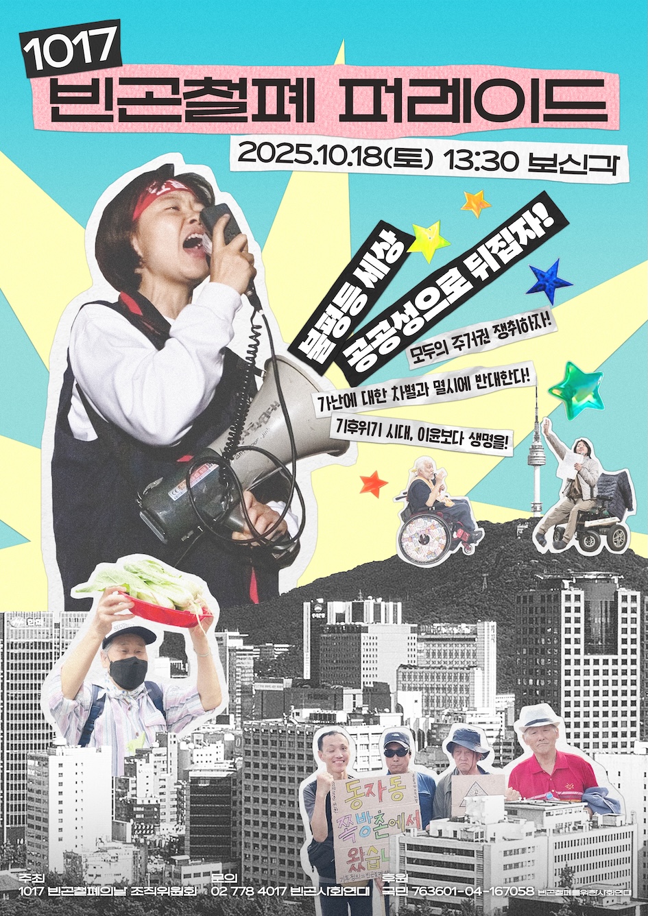 1017 빈곤철폐의날 조직위원회는 이같은 고민과 바람을 담아 10월 18일 오후 1시 30분 서울 종로구 보신각에서 ‘빈곤철폐의날 퍼레이드’를 진행한다.