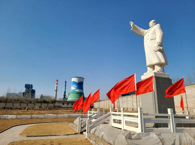중국 북부 허베이성의 한 쇠퇴한 제철소를 마오쩌둥 주석의 동상이 내려다보고 있다.