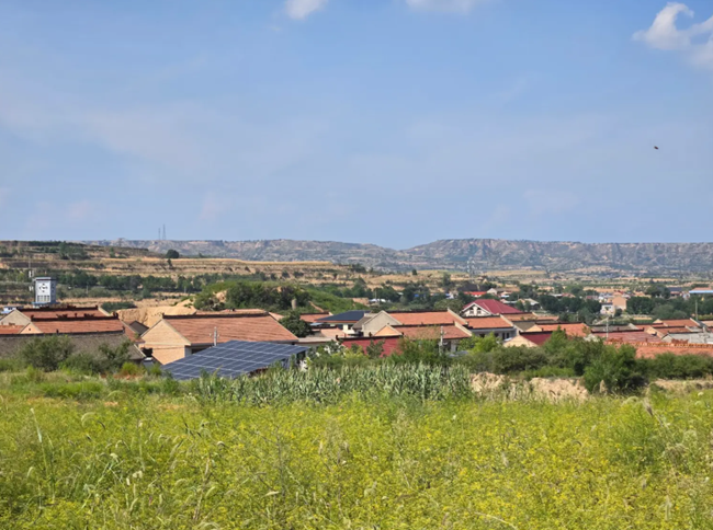 중국 북부 황토 고원의 험준한 지형 한가운데 있는 웡의 고향 마을 인근의 농지와 가옥들.
