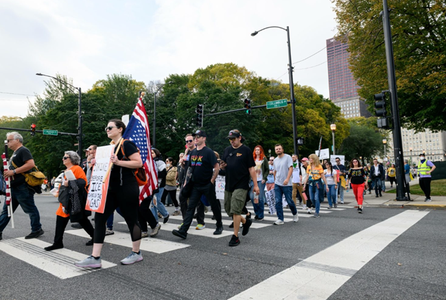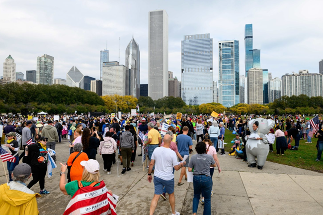 10월 18시카고 그랜트파크에서 시위대가 노 킹스’ 행진에 나섰다출처: Steel Brooks