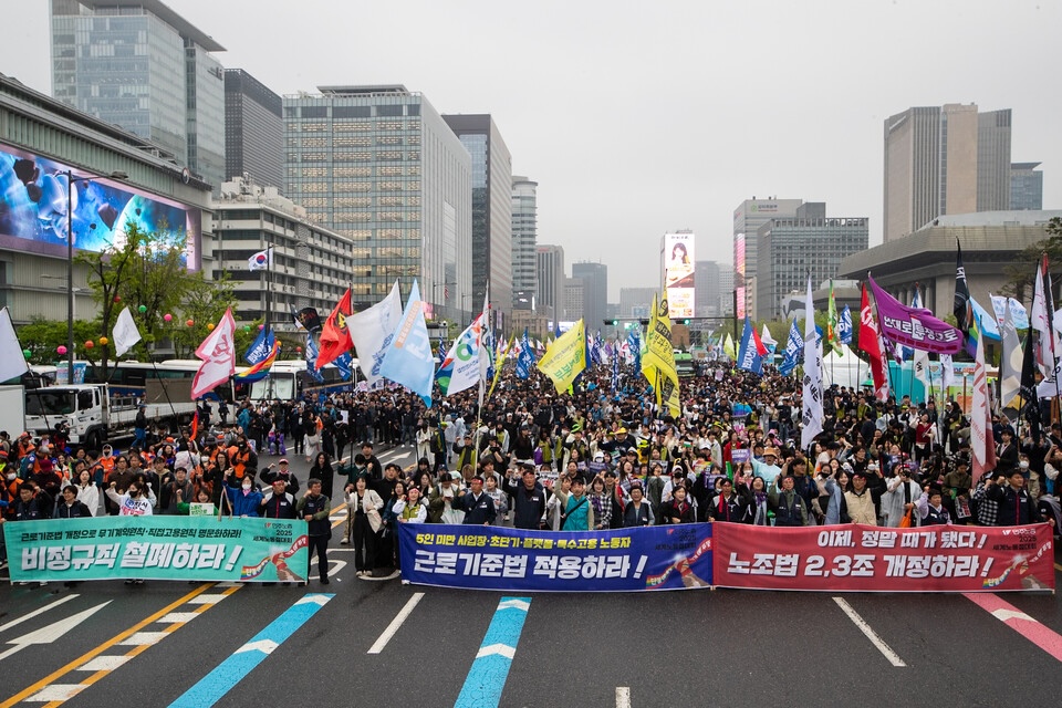 또한 “이름만 되찾았다고 해서 우리의 과제가 끝난 것은 아니다”라며 “진정한 노동절은 모든 일하는 사람들의 권리가 보장되는 날이어야 한다”고 짚었다. 민주노총은 “특수고용 노동자, 플랫폼 노동자, 프리랜서 등 수많은 이들이 법적으로 ‘노동자’로 인정받지 못한다”, “노동절에도 쉬지 못하고, 근로기준법과 노동법, 사회보장 제도의 사각지대에서 고통받고 있다”는 현실을 환기하면서 “일하는 모든 이들이 노동자로서 존중받고, 누구도 권리의 바깥에 놓이지 않는 사회, 바로 그것이 우리가 지향하는 진정한 노동절의 완성”이라고 짚었다.