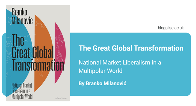 ⟪대전환⟫에서 브랑코 밀라노비치(Branko Milanović)는 신자유주의가 “국가 시장 자유주의(national market liberalism)”로 대체됐다고 주장했다. 그는 이 체제가 국제주의를 버리고 국내에서는 자유주의 정책을, 대외적으로는 중상주의적 정책을 결합한 질서라고 설명했다. 중국의 부상과 새로운 엘리트 계급의 형성을 실증 연구로 분석하며, 이는 오늘날 자본주의의 변화를 파악하는 데 중요한 통찰을 제공하는 강력한 분석이다.