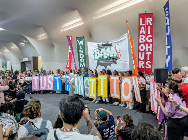 COP30에는 전 세계의 시민들이 모여 ’정의로운 전환‘을 외치기도 했다. 민주노총도 14일 국제노총(ITUC)이 국제노동기구(ILO) ’정의로운 전환 파빌리온‘(Just Transition Pavillion)에서 주관한 사이드 이벤트에 참여해 한국 석탄화력발전소 폐쇄 과정의 문제와 노동자의 권리를 발표했다. 이태성 공공운수노조 발전비정규직연대 지부장은 “한국의 노동자들은 자신들의 일자리가 사라짐에도 발전소 폐쇄에 동의했지만 정부와 발전공기업들은 일자리 대책을 마련하고 있지 않다”고 지적했다.