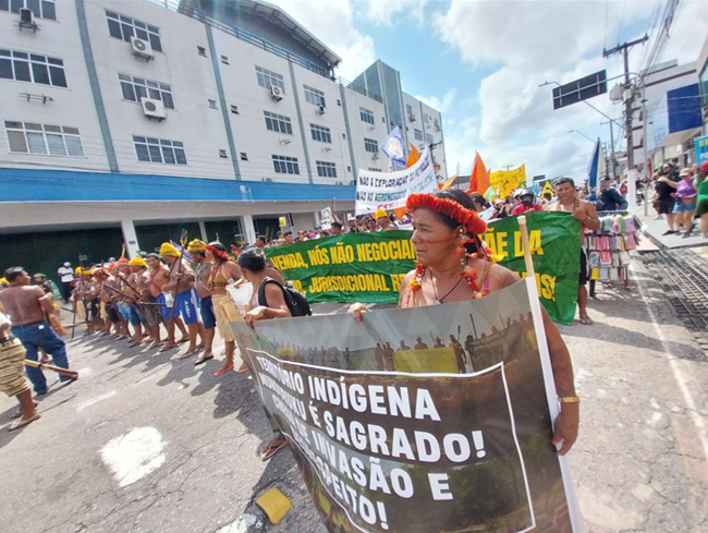 루시아 익스추(Lucía Ixchíu): 나는 과테말라 출신의 마야 키체 여성 루시아 익스추다. 나는 아마존 플로틸라와 과테말라의 페스티발레스 미디어의 일원이다. 나는 브라질에서 원주민 풀뿌리 조직들을 지지하기 위해 행진에 참여하고 있다. 동시에 과테말라와 대륙 곳곳에서 벌어지는 생태학적 파괴를 폭로하고 저항하고 있다. 나는 야쿠 마마 플로틸라의 일원이며, 우리는 에콰도르에서 벨렝까지 아마존 강을 따라 31일 넘게 항해하며 생태계 파괴를 직접 목격했다. 그래서 우리가 이렇게 함께 서는 것이 매우 중요하다. 우리는 환경 문제 해결을 위해 함께 행동해야 한다.
