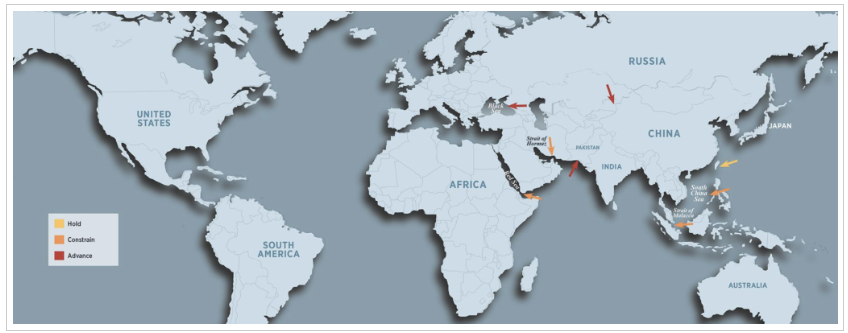 이 전략에서 소말리아와 소말릴란드는 “제한하기(constrain)” 전략에서 핵심적인 위치를 차지한다. 아래의 지도에서도 이 지역이 얼마나 전략적으로 중요한지를 확인할 수 있다.