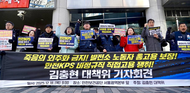 한편, 고 김충현 대책위는 기자회견에서 이재명 대통령의 말은 “공공기관의 외주화와 하도급 구조, 인건비 절감 경쟁이 반복되는 발전소 산재사망의 원인임을 대통령 스스로 지적한 것”이라며 실질적 문제해결을 촉구했다.