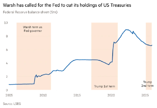 흥미로운 모순은 워시가 여전히 연준의 통화 공급 확대를 인플레이션의 원인으로 보고 이를 중단해야 한다고 주장한다는 점이다따라서 연준이 대차대조표를 더 축소한다면이는 파월 체제에서 한동안 그랬던 것처럼 국채 금리를 끌어올릴 수 있다물론 정부가 대규모 지출 삭감을 단행하고 인플레이션이 진정된다면 상황은 달라질 수 있다결국 모든 것은 인공지능이 실제로 얼마나 생산성을 끌어올리느냐에 달려 있다.