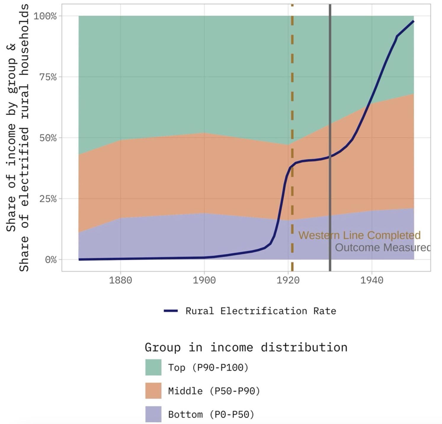 스웨덴의 소득 점유율과 농촌 전기화율의 변화 추이