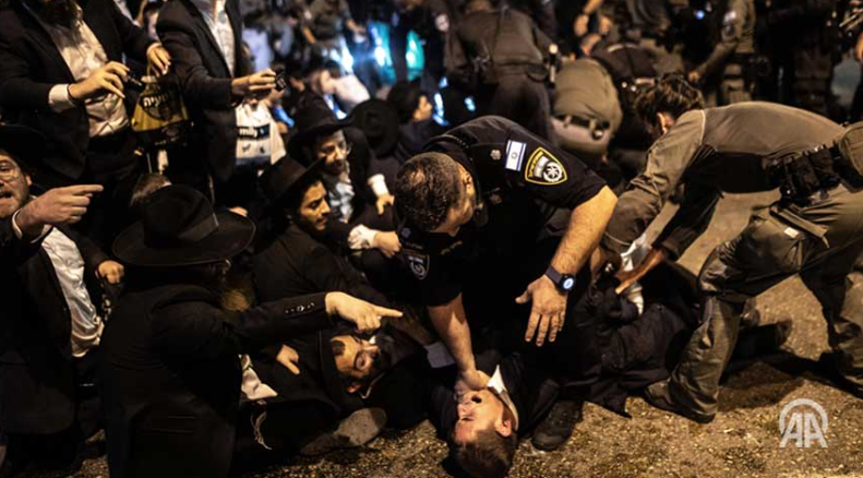 11월 18일 이스라엘 경찰과 초정통파 유대인 사이에 충돌이 발생했다. 군이 하레딤 공동체 남성 회원들에게 처음으로 1,000명의 징집 명령을 내렸다. 출처: 아나돌루 에이전시