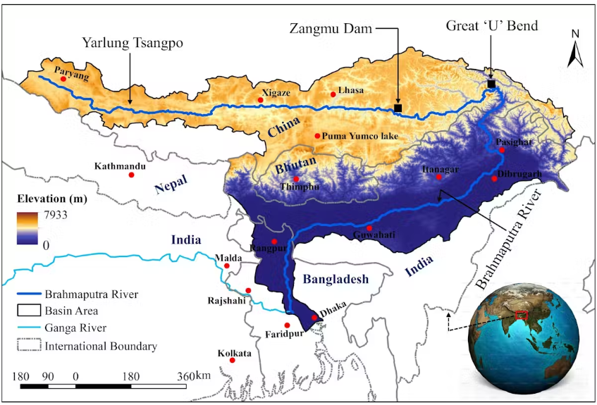 얄룽 창포(Yarlung Tsangpo) 강은 중국 티베트를 흐르다가, 예정된 댐 건설지 인근인 ‘대만곡(Great Bend)’에서 남쪽으로 방향을 튼 뒤, 인도와 방글라데시를 지나며 브라마푸트라(Brahmaputra) 강으로 이름이 바뀐다.