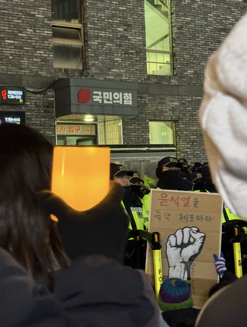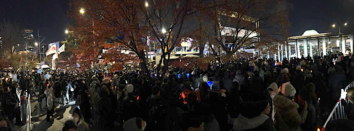 촛불을 든 성난 시민들은 오후 7시경부터 행진에 나서 국회를 에워싸고 "윤석열은 퇴진하라", "윤석열을 체포하라"고 소리 높여 외치고 있다.