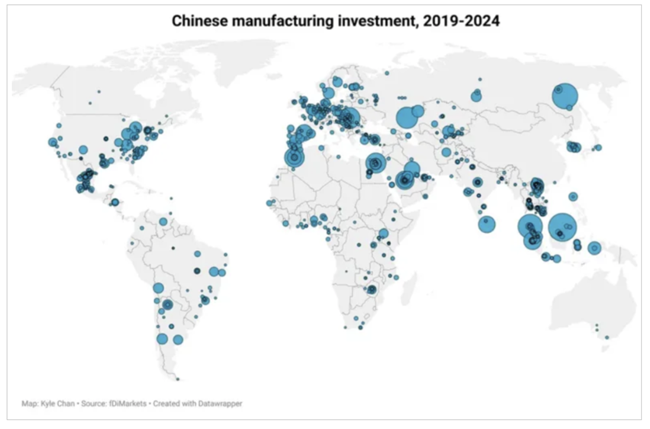 중국 기업들은 관세를 우회하고 시장 접근을 확보하려는 열망에 의해 전 세계에 공장을 세우고 새로운 글로벌 공급망을 구축하기 위해 경쟁하고 있다. 중국 기업들은 유럽연합, 브라질 같은 주요 목표 시장 내에 직접 제조 시설을 세워왔다. 그리고 멕시코나 베트남처럼 무역 협정을 통해 선진 시장에 접근할 수 있는 “연결국”에도 공장을 세워왔다. 예를 들어, 모로코는 전기차 및 배터리 제조와 관련된 중국의 투자에 있어 놀라울 만큼 인기 있는 목적지로 부상했는데, 이는 미국과 EU 양쪽 모두와 무역 협정을 맺고 있기 때문이다.