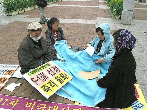 처음 시작... 문정현 신부님이 군산미군기지 민항공기 활주로 사용료 문제 등으로 소파(SOFA)개정운동을 시작하면서 ‘미 대사관 앞에서 ...