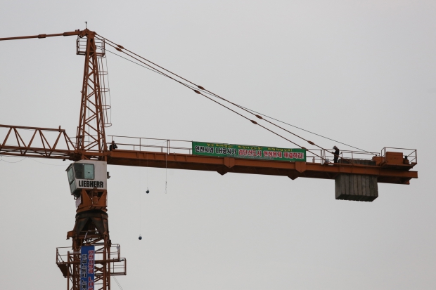 인천 건설기계 노동자 고공농성 이틀 “인간답게 일하고 싶다”