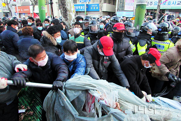 청주시, 공무원 등 900명 동원 노인병원 농성장 강제철거