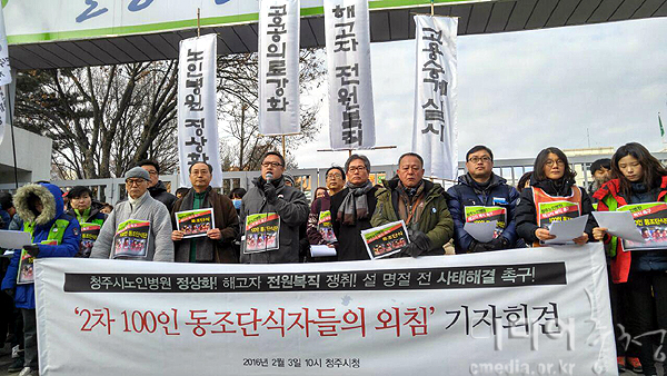 청주시노인전문병원 고용승계 촉구 100인 동조단식