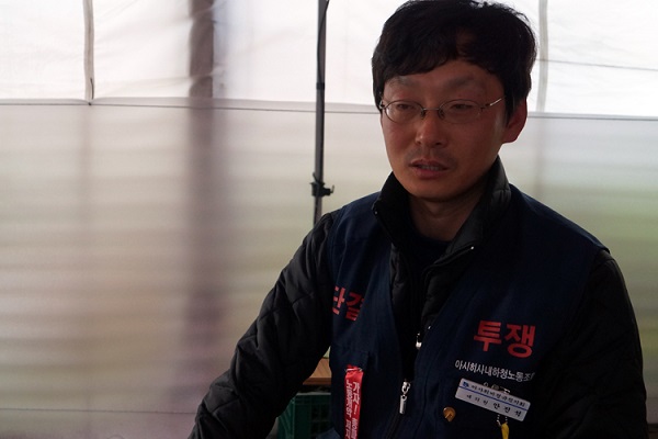 12일 대구, 구미 시민사회단체가 비정규직 해고 투쟁 200일을 앞둔 아사히글라스 농성장에 방문해 노조(금속노조 아사히비정규직지회)에 연대기금 ...