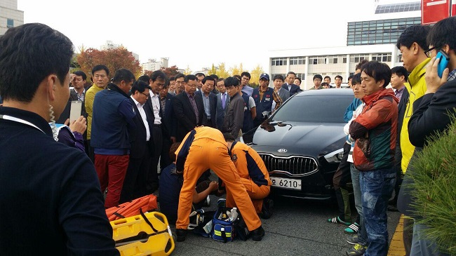 대량해고 사태 해결을 촉구하던 아사히글라스 하청업체 해고 노동자가 22일 구미시청 앞에서 남유진 구미시장의 차량에 부딪혀 병원에 입원하는 일이 ...