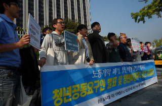 청년 비정규직 노동자와 학생들이 공동으로 박근혜 정부의 노동 개악을 규탄하고 모두를 위한 양질의 일자리 대책을 요구했다. 민주노총, 한국청년연대...
