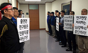 민주노총 공공연구노조가 막무가내식 정부출연 연구기관(출연연) 임금피크제 도입에 제동을 걸었다. 공공연구노조 간부 20여명은 7일 오후 4시 30...