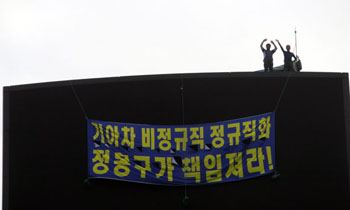 “처음에 올라왔을 때는 오금이 저려서 일어서지도 못했어요” 기아차 화성공장 사내하청 노동자 최정명(45) 씨가 웃음기 가득한 목소리로 말했다. ...