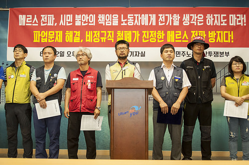 노동계는 이번 메르스 사태를 지켜보면서 비정규직이 확대될수록 국민 안전이 위협받는다는 사실이 확인됐다며 정부가 노동시장 구조개악과 비정규직 확대...