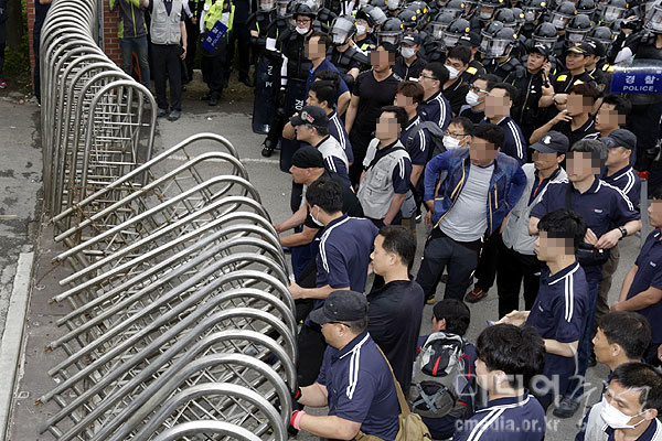 충남 아산시에 있는 갑을오토텍에서 경찰병력과 기업노조, 금속노조 간의 대치 상황이 18일 이틀째 계속된다. 이 가운데 전직 경찰, 특전사 출신을...