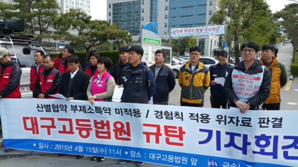 민주노총 울산투쟁본부 등 울산지역 노동단체는 14일 오후 현대자동차 정문 앞에서 기자회견을 열고 “현대차의 촉탁직 쪼개기 계약은 명백한 근로기준...