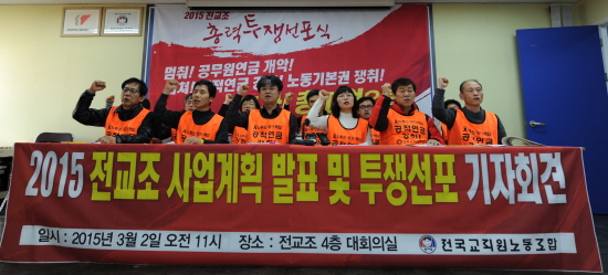 전교조는 2일 오전 서울 서대문 전교조 본부 대회의실에서 기자회견을 열어 2015 전교조 사업계획을 발표하고 총력투쟁을 선포했다.