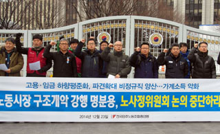 이번 노사정 합의는 그간 노동계의 반발에 부딪혀 왔던 해고요건 완화와 비정규직 파견 확대 및 기간 연장 등 정부의 노동시장 구조개악의 명분으로 ...