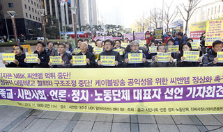 시민사회와 정당, 언론, 노동계, 학계, 법조계 등 약 280명의 대표자들이 씨앤앰 비정규직 대량해고 철회와 정상화 등을 요구하는 선언을 발표했...