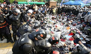현대중공업 그룹사 노동자들이 서울로 상경해 현대중공업 사측의 임단협 성실교섭을 촉구했다. 이들은 정몽준 현대중공업 최대주주가 기업의 실질적인 경...