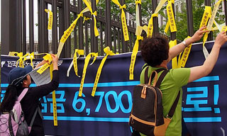 2015년도 최저임금 적용 논의가 본격화되면서 양대노총이 2015년도 최저임금은 시급 6700원 이상으로 정해야 한다고 촉구했다.