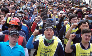전국에서 상경투쟁에 나선 500여 명 조선소 노동자들의 함성이 여의도 정몽준 서울시장 후보 선거 사무실을 뒤흔들었다. 전국금속노조 조선업분과 소...