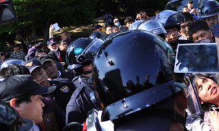 전면파업 삼성전자서비스지회, 삼성본관 진입시도...충돌[2]