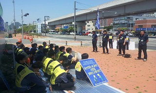 22미터 고공과 땅의 만남, “유성기업 사업주 처벌하라”