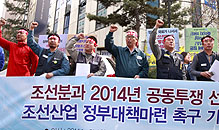 2일 오후 3시. 울산, 거제, 남해 등지에서 서울 여의도 새누리당 당사 앞에 올라와 기자회견을 하는 조선소 노동자들은 분이났다.