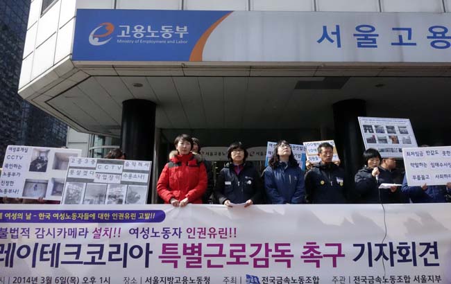 일방 공장이전과 통근버스 중단 등 노조탄압을 저질러 온 레이테크코리아가 여성노동자들이 일하는 현장과 탈의실에 감시카메라를 설치했다. 3월6일 고...