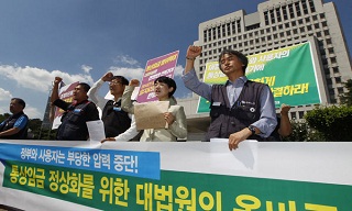 민주노총은 중앙집행위원회는 27일, 통상임금 대응지침을 공식 채택하고 △사용자의 근로계약서, 취업규칙 불이익변경에 대한 대응 △단체교섭 추진 방...