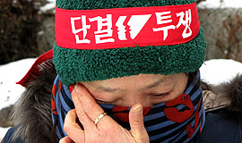 한국수자원공사에서 청소, 시설관리 업무를 위탁받은 신규용역업체로부터 계약 해지된 비정규직 노동자 10명이 한 겨울에 집단 단식농성과 동시에 천막...