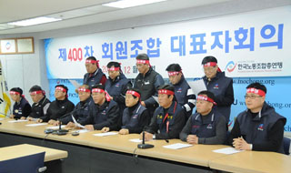 민주노총은 23일 오후 서울 민주노총 본부 앞에서 확대간부 파업투쟁 결의대회를 갖고 박근혜 정부 퇴진과 철도민영화 저지를 위한 총력 투쟁을 굳게...