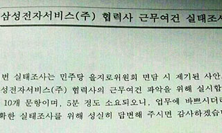 ‘위장도급’ 논란 중인 삼성전자서비스가 25일부터 전국 각 센터 협력사 AS기사들을 상대로 ‘근무여건 실태조사’를 시작했지만 비판이 만만치 않다...