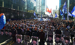 전국에서 모인 삼성전자서비스 하청노동자 A/S기사들이 전국노동자대회가 열리는 10일 오전 10시 서울 교대역에 모여 강남 삼성전자 본사 앞으로 ...